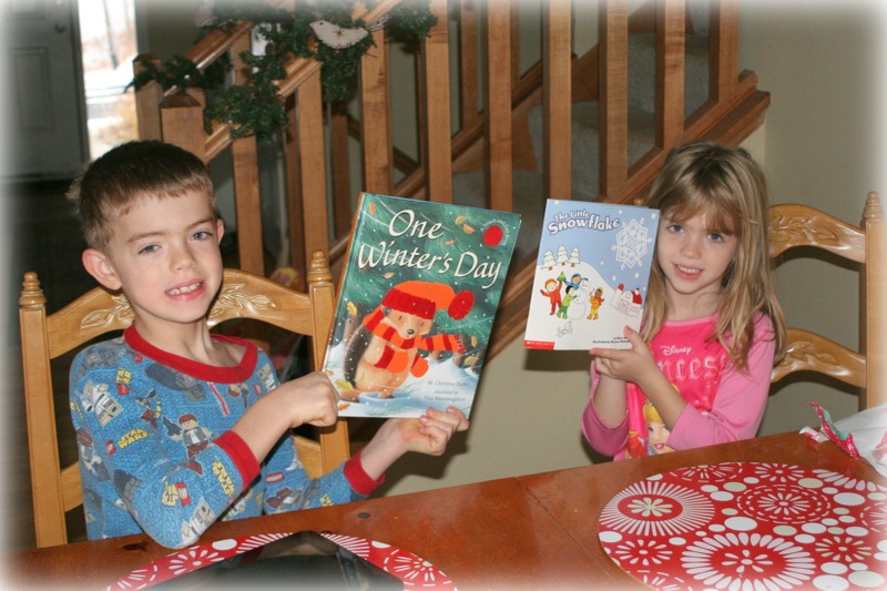 Today's books were One Winter's Day by M. Christina Butler and The Little Snowflake by Steve Metzger. They were most appropriate since it snowed over night and the kids woke up to a lovely blanket of white.
