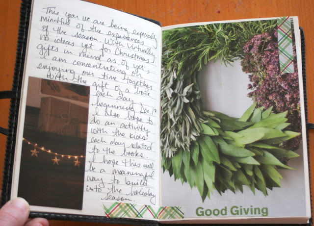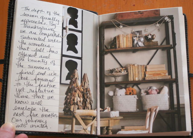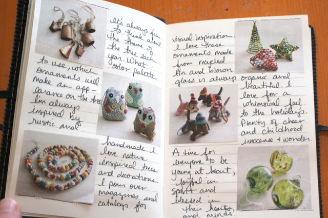 I also thought I'd share my little holiday journal. It began right after Thanksgiving when I was thinking about to-do lists and plans for the holiday's. We were also getting a lot of catalogs in the mail, so I wanted a place to put these bits of visual inspiration. It's just a little notebook to jot thoughts, pretty pictures and other fun stuff.